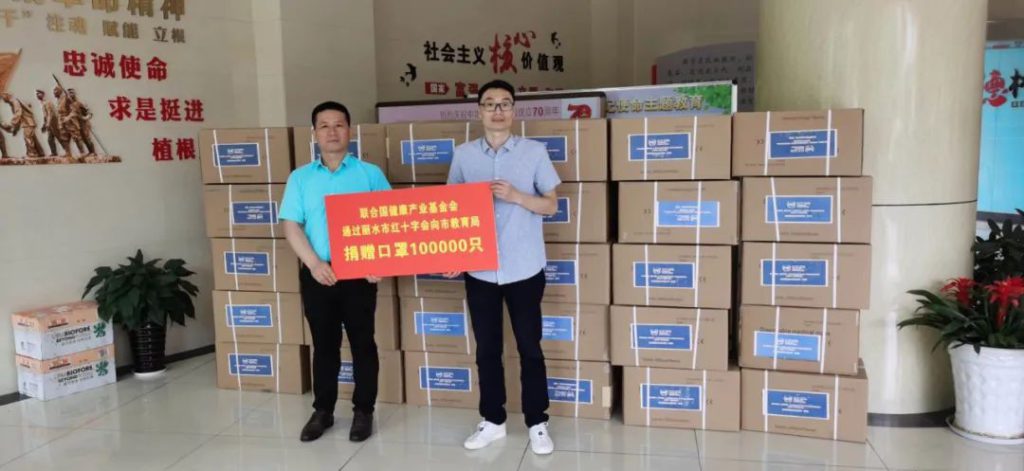 On May 9, 2020, UNHIF donated 100,000 masks to the Red Cross Society of Lishui Branch,