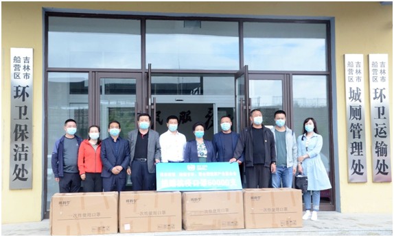 To make sure the anti-epidemic resources get delivered, the donation project team chose a professional mask producing factory in Shenyang, Liaoning, and ordered 50,000 masks. In the end of May, after receiving qualified masks, the team contacted with the related department in Jilin, and discussed about the donation. Finally, these masks were donated to the Civil Affairs Bureau, the Construction and Environmental Hygiene Department, police stations, and two corporates which were seriously affected by the epidemic in ChuanYing District, Jilin City. Some masks were distributed by the Civil Affairs Bureau to anti-epidemic staff in each community and nursing home. Some were distributed to public janitors by the Construction and Environmental Hygiene Department.